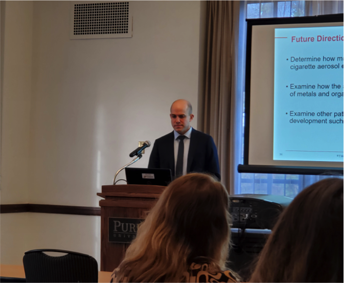 Benefits of Attending the OVSOT Meeting The Annual OVSOT meeting was a great opportunity to network with colleagues in the same geographical region and to contribute to the development of future toxicologists by interacting with our students and trainees. This meeting featured Dr. Aruni Bhatnagar, PhD, Director, Envirome Institute, Univ. of Louisville. The meeting agenda included student and postdoc platform and poster presentations and “Lunch with an Expert." Please note that you do not have to be a member of OVSOT to attend the meeting. The OVSOT Annual Meeting provides an inexpensive opportunity for students of all levels (undergraduate, MS, PhD, postdocs). Help us spread the word and encourage your colleagues, lab personnel, students, and postdocs to attend! Best Platform Presentation and Best Poster Award OVSOT awarded prizes for Best Platform Presentation at the Predoctoral and Postdoctoral levels and Best Poster Awards at the undergraduate, MS, PhD, and postdoctoral levels. Please see our awards page for more details to particapate next year. Lunch with an Expert The Ohio Valley Chapter held this informal lunch event to encourage interactions between students and professional toxicologists serving in government, industry, academia, and consulting. Undergraduate Student Travel Support Through a Pilot Project hosted by the SOT Undergraduate Subcommittee funding was available to support undergraduate student travel to the OVSOT meeting. 2017 OVSOT Fall Meeting Friday, December 1, 2017 • Purdue University, West Lafayette, IN Special Activities: Lunch with an Expert, Keynote Speaker, Networking, Student and Postdoc Platform and Poster Presentations Preliminary Meeting Agenda | Meeting Agenda 2017 Meeting Sponsors: